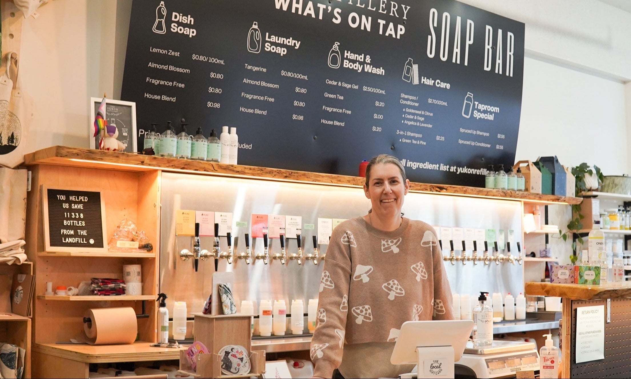 This past year so many things have happened at The Yukon Refillery. We leveled up big time by acquiring half of the old Collective Good space in Horwood's Mall. This meant that we had four times the space to work with compared to our previous small little shop. We expanded to add so many new products and are now carrying over 1,600 products! We also carry 15 local brands as well. The expansion came with a lot of work but it was well worth the effort. Our space is open and inviting, inclusive and accessible to all!